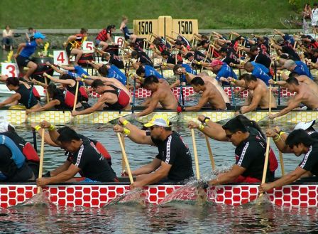 You know what they say about China: Everything's bigger in China. Their cards, their hair, their capacity for love, and as I'm sure you were guessing, their Dragon Boats. Now, what exactly is a Dragon Boat? Is it a boat with the fearsome prowess of the mighty dragon? Is a boat that can fly? Is it a boat that looks like it has a replica castle on it that is manned by a bunch of men who look like purple ninjas?