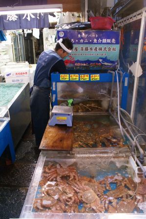 Tsukiji fish market (maybe- it was a fish market in Tsukiji). Woke up at 5am, wandered around the fish market and ate fresh sushi next to an alcoholic (a bottle of wine before 7am? Maybe it's just a Japanese thing).